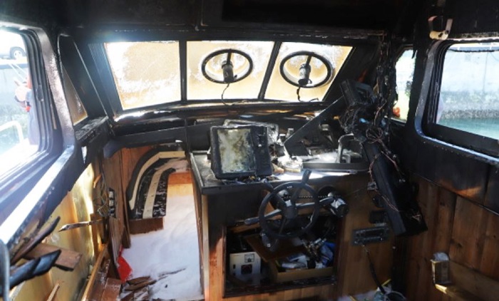 | °ÅÁ¦½Ã ÀÏ¿î¸é Áö¼¼Æ÷ À¯¶÷¼±Å͹̳Π¼±ÂøÀå¿¡¼ Á¤¹Ú ÁßÀÌ´ø ¼±¹Ú¿¡¼ ÈÀç°¡ ¹ß»ý, Á¶Å¸½Ç ³»ºÎ°¡ ºÒ¿¡ ÅÀ´Ù. /»çÁøÁ¦°ø=°ÅÁ¦¼Ò¹æ¼ |