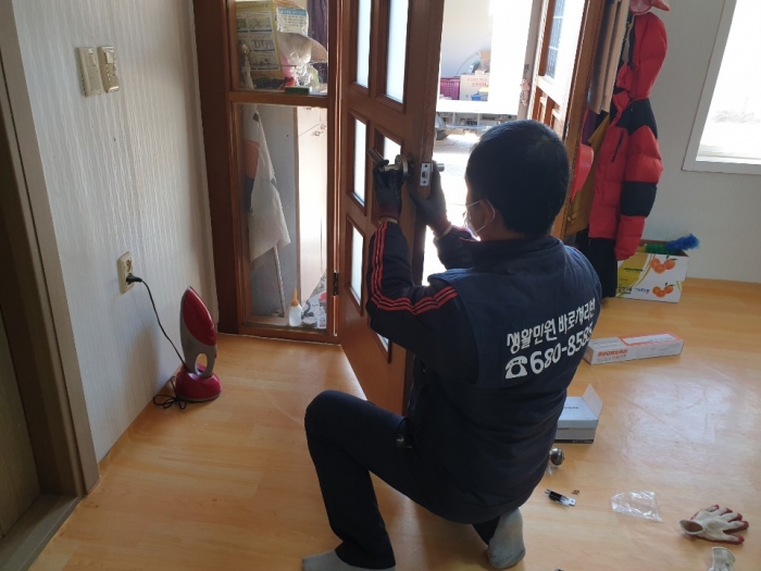 ¶ÇÇÑ ¹®°í¸® ±³Ã¼»ç¾÷Àº ±âÁ¸ÀÇ µÕ±Ù ¸ð¾çÀÇ ¼ÕÀâÀÌ·Î ³ë·ÉÃþ¿¡¼ »ç¿ëÇÏ±â ºÒÆíÇÑ ¹®°í¸®¸¦ ·¹¹ö½Ä ¹®°í¸®·Î ±³Ã¼ÇÏ¿© ¹® °³Æó¸¦ ¿ëÀÌÇÏ°Ô ÇÏ°í ¼ÕÀâÀ̰¡ ¾ø´Â ¹Ì´ÝÀ̹®¿¡´Â ¼ÕÀâÀ̸¦ ´Þ¾ÆÁÜÀ¸·Î½á ¼Õ ³¢ÀÓ ¹æÁö µî ¾ÈÀüÀ» µµ¸ðÇÑ´Ù.
