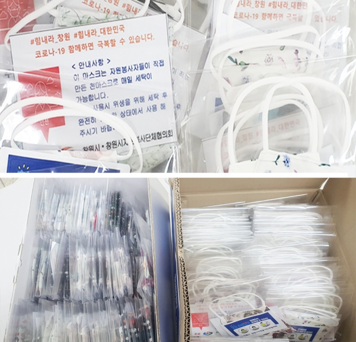ÀÌ¿¡ â¿ø½Ã ÀÚ¿øºÀ»ç´ÜüÇùÀÇȸÀÇ ÀÚ¿øºÀ»çÀÚµéÀÌ °øÀû¸¶½ºÅ© ±¸¸Å¿¡ ¾î·Á¿òÀ» °Þ´Â ¿Ü±¹ÀÎ À¯ÇлýÀ» À§ÇØ Á÷Á¢ Á¦ÀÛÇÑ ¾à 400¿© ÀåÀÇ ¸é ¸¶½ºÅ©¸¦ °æ³²´ëÇб³·Î Àü´ÞÇÑ °ÍÀÌ´Ù.