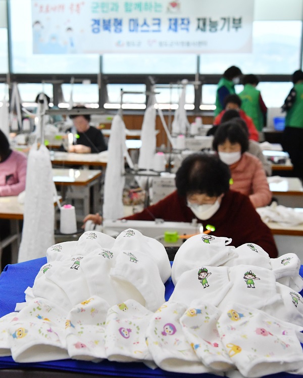 ¸¶½ºÅ© Á¦ÀÛÀº ûµµ±º ¿©¼ºÈ¸°ü¿¡¼ ÀçºÀ±â¼úÀ» ÀÍÈù ¼ö°»ýµé°ú ȨÆÐ¼Ç °»ç°¡ ÁÖÃàÀÌ µÇ¾î ûµµ±º ¿©¼º´ÜüÇùÀÇȸ¿ø, û·¯ºêȸ¿ø, °³ÀÎ ÀÚ¿øºÀ»çÀÚ µî 40¿©¸íÀÌ ÇÔ²² ÁÖ¸»µµ ÀØÀº ä ÀÛ¾÷À» Çϰí ÀÖ´Ù.