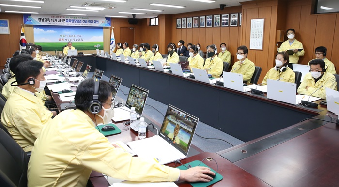 [½Ã»çÄÚ¸®¾ÆÀú³Î=±èÈñ¿µ ±âÀÚ] °æ³²±³À°Ã»Àº 1ÀÏ ±³À°°¨°ú ºÎ±³À°°¨, ±¹Àå ¹× ºÎ¼Àå°ú 18°³ ±³À°Áö¿øÃ» ±³À°Àå µî ÃÑ 43¸íÀÌ Âü¼®ÇÑ °¡¿îµ¥ '°æ³²±³À° 18°³ ½Ã·±º ±³À° ÇöÀå Á¡°ËÀ» À§ÇÑ ±ä±Þ È»óȸÀÇ'¸¦ °³ÃÖÇß´Ù.