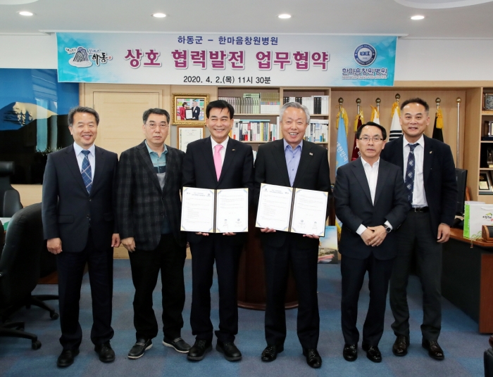 [½Ã»çÄÚ¸®¾ÆÀú³Î=¼ÕÁ¤Çö±âÀÚ] Çϵ¿±ºÀÌ ±º¹ÎÀÇ °Ç°ÁõÁø°ú Áö¿ª°æÁ¦ Ȱ¼ºÈ¸¦ À§ÇØ Ã¢¿ø½Ã¿¡ ¼ÒÀçÇÑ ÇѸ¶À½Ã¢¿øº´¿ø(ÀÌ»çÀå ÇÏÃæ½Ä)°ú ¼ÕÀ» Àâ¾Ò´Ù.