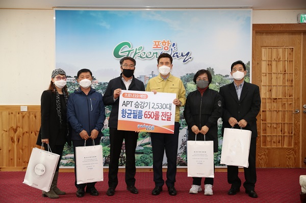 Æ÷Ç׽ô ±èÈ«¿ Àü±¹¾ÆÆÄÆ® ÀÔÁÖÀÚ´ëǥȸÀÇ Æ÷Ç×ÁöºÎÀå µî ÀÓ¿øÁø°ú ¹Ú¿øÈ¯ ´ëÇÑ ÁÖÅðü¸®»çÇùȸ Æ÷Ç×ÁöºÎÀå¿¡°Ô Ç×±Õ Çʸ§ 650·ÑÀ» Àü´ÞÇß´Ù.