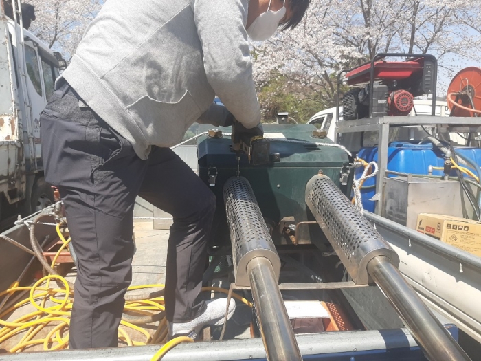 ¹æ¿ª Àåºñ ¼ö¸® ¹× Á¡°ËÀº ÇöÀç °ü³» º¸À¯Çϰí ÀÖ´Â Â÷·®¿ë ¿¬¸·¼Òµ¶±â 7´ë, ºÐ¹«¿ë ¹æÁ¦±â 1´ë µîÀ» ´ë»óÀ¸·Î ³ëÈÄµÈ ¹æ¿ª±âÀÇ ¼Ò¸ðǰ ±³Ã¼Çϰí, È¿À²ÀûÀ̰í Á¤È®ÇÑ ¹æ¿ª ½Ç½Ã¸¦ À§ÇØ ±Ù¹«ÀÚÀÇ Àåºñ »ç¿ë ±³À°µµ ½Ç½ÃÇß´Ù.