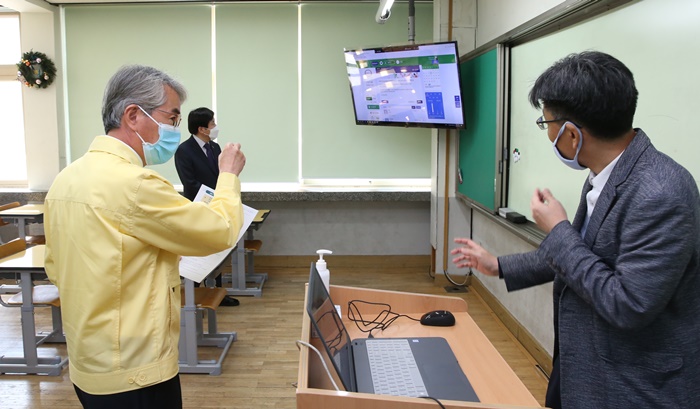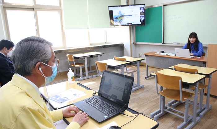 [½Ã»çÄÚ¸®¾ÆÀú³Î=±èÈñ¿µ ±âÀÚ] °æ³²±³À°Ã»Àº ¿Â¶óÀÎ °³ÇÐ ÇÏ·ç ÀüÀÎ 8ÀÏ ¿ÀÀü ½ÅÇб⠰³ÇÐ Áغñ »óȲÀ» Á¡°ËÇÏ°í ¿ø°Ý¼ö¾÷ ¿î¿µÀÌ ½ÇÁ¦·Î Àß ÀÌ·ç¾îÁö°í ÀÖ´ÂÁö Çб³ ÇöÀåÀ» ¹æ¹®ÇØ Á÷Á¢ Á¡°ËÇß´Ù.