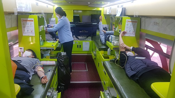 À̳¯ ÇåÇ÷ ºÀ»çȰµ¿Àº Äڷγª19 È®»ê Àå±âÈ·Î ÇåÇ÷ÀÚ°¡ ±Þ°ÝÈ÷ °¨¼ÒÇÏ¿© Ç÷¾×¼ö±Þ¿¡ ¾î·Á¿òÀ» °Þ°í ÀÖ´Â »óȲ ±Øº¹À» À§ÇØ ÀÌ·ç¾îÁ³À¸¸ç, ¿ù¼ºº»ºÎ¿¡¼´Â 100¿©¸íÀÇ Á÷¿øµéÀÌ Âü¿©ÇÏ¿© ÀÚ½ÅÀÇ Ç÷¾×À» ±âÁõÇß´Ù.