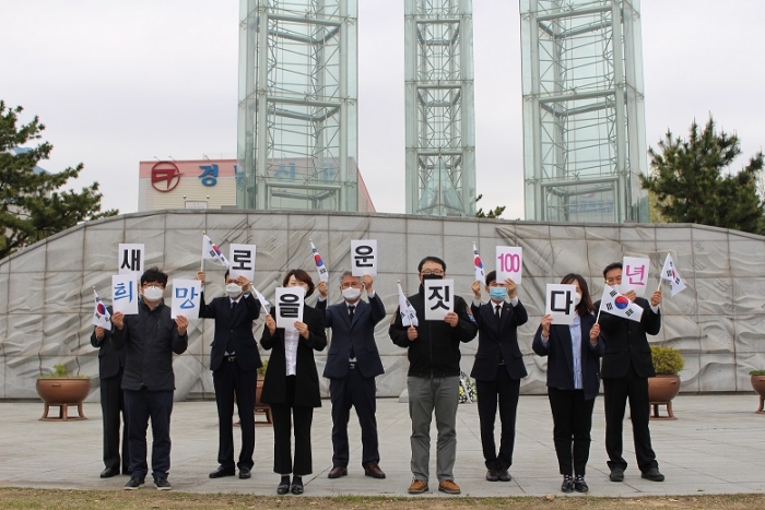 [½Ã»çÄÚ¸®¾ÆÀú³Î ÀÌȯ¼ö ±âÀÚ] °æ³²µ¿ºÎº¸ÈÆÁöû(ÁöûÀå ¾ÈÁÖ»ý)Àº Á¦101Áֳ⠴ëÇѹα¹ ÀÓ½ÃÁ¤ºÎ ¼ö¸³ ±â³äÀÏÀ» ¸Â¾Æ 10ÀÏ ±¤º¹È¸ °æ³²µµÁöºÎ(ÁöºÎÀå Àå»óÁø)¿Í ÇÔ²² °æ³²Ç×Àϵ¶¸³¿îµ¿±â³äž¿¡¼ Âü¹è ¹× Ä·ÆäÀÎ(‘»õ·Î¿î ¹é³â, Èñ¸ÁÀ» Áþ´Ù’)À» ÁøÇàÇß´Ù.