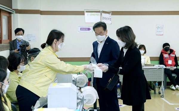 [½Ã»çÄÚ¸®¾ÆÀú³Î À̵¿¿ì ±âÀÚ] Ãֱ⹮ ¿µÃµ½ÃÀåÀº 21´ë ±¹È¸ÀÇ¿ø ¼±°Å ù³¯ÀÎ 10ÀÏ µ¿ºÎµ¿ »çÀüÅõÇ¥¼Ò(Æ÷ÀºÃʵîÇб³ 1Ãþ Ǫ¸¥¼Ö ÇнÀ½Ç)¸¦ ã¾Æ ÅõÇ¥Çß´Ù.