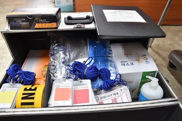 °æÁÖ¼¿¡¼ ÁغñÇÑ ‘¹æ¿ª Ãʱ⠴ëÀÀ ¹°Ç°ÇÔ(KIT)’¿¡´Â ´ëÀÀ¸Å´º¾ó, Æú¸®½º¶óÀÎ, ü¿Â°è, ¸¶½ºÅ©, ¶óÅØ½º Àå°©, ¹æÈ£º¹, ¼Õ¼Òµ¶Á¦, Ãþº° ¾È³»µµ, °Ý¸®ÀÚ ¸í´Ü ±âÀçÇ¥, ºñ»ó¿¬¶ô¸Á, Á¢ÃËÀÚ Ç¥½Ä ¸íÂû, ±Ù¹«ÀÚ Ç¥Âû, ÃâÀÔÅëÁ¦ ¾È³»¹® µîÀÌ Æ÷ÇԵǾî ÀÖ´Ù.