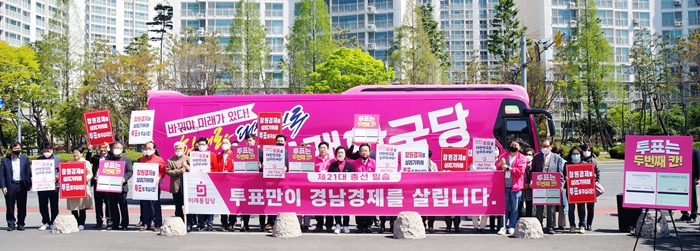 [½Ã»çÄÚ¸®¾ÆÀú³Î=Á¤Á¾¹Î ¼±ÀÓ±âÀÚ] ¹Ì·¡ÅëÇÕ´ç °æ³²¼±°Å´ëÃ¥À§È¸´Â 21´ë ±¹È¸ÀÇ¿ø ¼±°Å ÅõÇ¥ÀÏÀ» ÇÏ·ç ¾ÕµÐ 14ÀÏ ¿ÀÀü â¿ø ¸¸³²ÀÇ ±¤Àå¿¡¼ ÅõÇ¥Âü¿© Ä·ÆäÀÎÀ» Àü°³ÇÏ¸é¼ "À̹ø ÃѼ±Àº ¹«´ÉÇÏ°í ¿À¸¸ÇÑ ¹®ÀçÀÎ Á¤±ÇÀ» ¾öÁßÈ÷ ½ÉÆÇÇÏ´Â ¼±°Å"¶ó¸ç ¾ÐµµÀûÀÎ ÁöÁö¸¦ ´çºÎÇß´Ù.