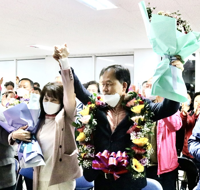 | â¿ø½Ã ¸¶»êȸ¿ø±¸ ¹Ì·¡ÅëÇÕ´ç À±ÇÑÈ« ´ç¼±ÀÚ°¡ Àç¼±¿¡ ¼º°øÇÑ µÚ, ºÎÀΰú ÇÔ²² ²É¸ñ°ÉÀÌ¿Í ²É´Ù¹ßÀ» ¹Þ°í ÀλçÇϰí ÀÖ´Ù. |