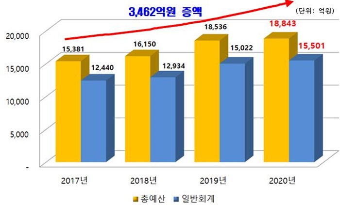 À̹ø Ã߰濹»ê¾ÈÀº ´çÃÊ¿¹»ê ´ëºñ 1,247¾ï¿ø Áõ°¡ÇÑ 1Á¶8,843¾ï¿øÀ¸·Î ÀϹÝȸ°è 1Á¶5,501¾ï¿ø(1,042¾ï¿ø↑), Ưº°È¸°è 3,342¾ï¿ø(205¾ï¿ø↑)ÀÌ¸ç ±ä±ÞÀç³Áö¿ø±Ý ÁöÀÚü ºÐ´ã±ÝÀ» ºñ·ÔÇÑ Äڷγª19 ´ëÀÀ ¿¹»êÀº Àç³°ü¸®±â±ÝÀ» Æ÷ÇÔÇØ ÃÑ 652¾ï¿ø ±Ô¸ð´Ù.