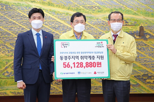 Àü´Þ½Ä¿¡´Â ÁÖ³«¿µ °æÁÖ½ÃÀå, ³ë±â°æ ¿ù¼º¿øÀڷº»ºÎÀå, Á¤µ¿ÀÇ °æºÏ»çȸº¹Áö°øµ¿¸ð±Ýȸ »ç¹«Ã³Àå µîÀÌ Âü¼®Çß´Ù. ±âºÎ±ÝÀº µ¿°æÁÖÁö¿ªÀÇ ±âÃÊ»ýȰ¼ö±ÞÀÚ¿Í Â÷»óÀ§°èÃþ, ÇѺθð°¡Á¤, ¼Ò³â·¼Ò³à °¡Àå ¹× µ¶°Å³ëÀÎ, ±âŸ »ý°è°ï¶õÀÚ µî¿¡°Ô »ç¿ëµÉ ¿¹Á¤ÀÌ´Ù.