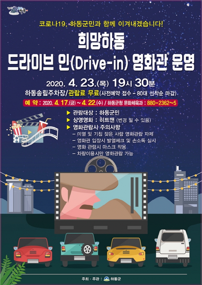 [½Ã»çÄÚ¸®¾ÆÀú³Î=¼ÕÁ¤Çö±âÀÚ] Çϵ¿±ºÀº Äڷγª19 È®»ê¿¡ µû¸¥ »çȸÀû °Å¸®µÎ±â·Î ½É½ÅÀÌ ÁöÄ£ ±º¹ÎµéÀ» À§ÇØ ÀÚµ¿Â÷ ¾È¿¡¼ ¾È½ÉÇÏ°í ¿µÈ¸¦ Áñ±æ ¼ö ÀÖ´Â ‘Èñ¸ÁÇϵ¿ µå¶óÀ̺ê ÀÎ(Drive–in) ¿µÈ°ü’À» ¿î¿µÇÑ´Ù°í 20ÀÏ ¹àÇû´Ù.