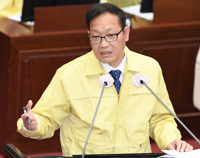 | °ÅÁ¦Ãâ½Å ±è¼º°© °æ³²µµÀÇ¿øÀÌ 20ÀÏ ¿¸° °æ³²µµÀÇȸ Á¦372ȸ ÀÓ½Ãȸ Á¦1Â÷ º»È¸ÀÇ¿¡¼ µµÁ¤ Áú¹®À» Çϰí ÀÖ´Ù. |