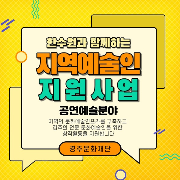 ÇÑÆí °æÁÖ¹®ÈÀç´ÜÀº Áö¿ø»ç¾÷À» ÅëÇØ °æÁÖ ¿¹¼úÀÎÀÇ µ¥ÀÌÅͺ£À̽º¸¦ ±¸ÃàÇÏ°í °æÁÖ ¿¹¼ú°èÀÇ ÇöȲÀ» ÆÄ¾ÇÇØ ´õ ü°èÀûÀ¸·Î Áö¿ª¹®È¿¹¼ú»ç¾÷ÀÇ ±â¹ÝÀ» ¸¶·ÃÇÒ ¿¹Á¤ÀÌ´Ù.