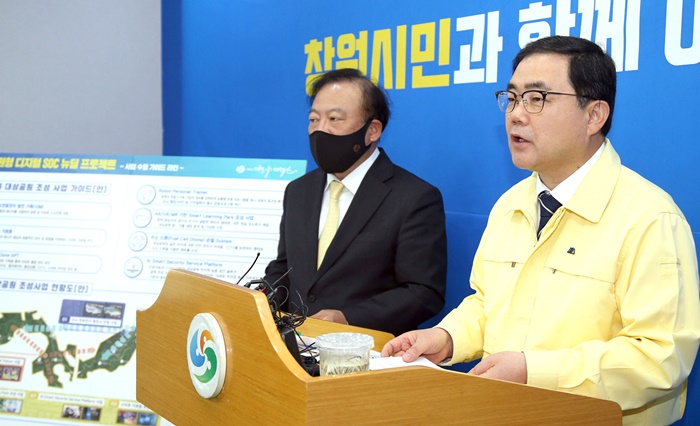 Ç㼺¹« â¿ø½ÃÀåÀº “‘â¿øÇü µðÁöÅÐSOC ´ºµô ÇÁ·ÎÁ§Æ®’ÀÇ 4´ë ÁßÁ¡Àü·«ÀÎ Smart(¿¬°á°ú Áö´ÉÈ ), Speed(ºü¸¥±¸Ãà), Strong(°·ÂÇÑ ÆÄ±Þ·Â), Sustainable(Áö¼Ó°¡´ÉÇÑ °æÁ¦¼º)À» ¹ÙÅÁÀ¸·Î °í¿ëÈ®´ë, Áö¿ª°æÁ¦ Ȱ¼ºÈ, Àå±âÀû Àü·«»ê¾÷ À°¼º µî ºü¸¥ °æÁ¦ ¹Ýµî È¿°ú¸¦ âÃâÇϰڴٔ°í ¸»Çß´Ù.