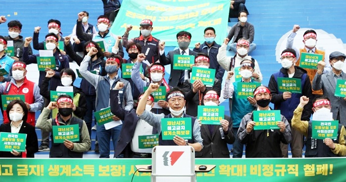 ¹ÎÁÖ³ëÃÑÀº ½ÅÁ¾ Äڷγª¹ÙÀÌ·¯½º °¨¿°Áõ(Äڷγª19) »óȲ Àå±âÈ·Î ÀÏ¿ëÁ÷·Æ¯¼ö°í¿ë³ëµ¿ÀÚ¿Í ¿µ¼¼ ÀÚ¿µ¾÷ÀÚ µîÀÌ ´õ¿í ¾î·Á¿ò¿¡ ºüÁ®µé°í ÀÖ´Ù¸ç "¸ðµç Á¾·ùÀÇ ÇØ°í ±ÝÁö¿Í Ãë¾à°èÃþ¿¡ ´ëÇÑ »ý°è¼Òµæ º¸Àå, »çȸ¾ÈÀü¸Á Àü¸é È®´ë°¡ ÇÊ¿äÇÏ´Ù"°í °Á¶Çß´Ù.