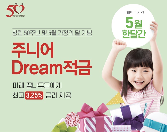 ¸¶ÄÉÆÃÃßÁøºÎ À̰¿ø ºÎÀåÀº “BNK°æ³²ÀºÇàÀÌ 50ÁÖ³â ⸳±â³äÀÏÀÌ ÀÖ´Â 5¿ù °¡Á¤ÀÇ ´ÞÀ» ¸Â¾Æ ±â»ÝÀ» ÇÔ²² ³ª´©°íÀÚ ¹Ì·¡ ²Þ³ª¹«µé¿¡°Ô Ưº°ÇÑ ¼±¹°À» ÁغñÇß´Ù. ÁִϾîDreamÀû±ÝÀº ÃÖ´ë ¿¬ 3.25%ÀÇ ³ôÀº ÀÌÀ²À» ¹ÞÀ» ¼ö ÀÖ´Â Àû±Ý»óǰÀθ¸Å Àú±Ý¸® ½Ã´ë ÀýÈ£ÀÇ ÀçÅ×Å© ±âȸ°¡ µÉ °ÍÀÌ´Ù”°í ¸»Çß´Ù.