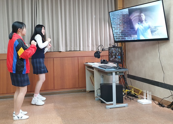 °æÁÖ ¼±´ö¿©ÀÚ°íµîÇб³(±³Àå ±Ç¿µ¶ó) ÇлýµéÀº Áö³ 1ÀÏ ¹Ì±¹ µ¥¸ðÅ©¶ó½Ã ÇÁ·¾ ÃÅÍ ½ºÄð(Democracy Prep Charter High School, ±³Àå ¿¤¸®»ç µð¸¶¿ì·Î. ÀÌÇÏ DP) Çлýµé°ú °¢ÀÚ Áý¿¡¼ Äڷγª19, BTS ±ÙȲ µî ´Ù¾çÇÑ ÁÖÁ¦¿¡ ´ëÇØ »ó´ë¹æ ¾ð¾î·Î Áú¹®ÇÏ°í ´äÇÏ´Â È»óÅä·ÐÀ» ÁøÇàÇß´Ù.