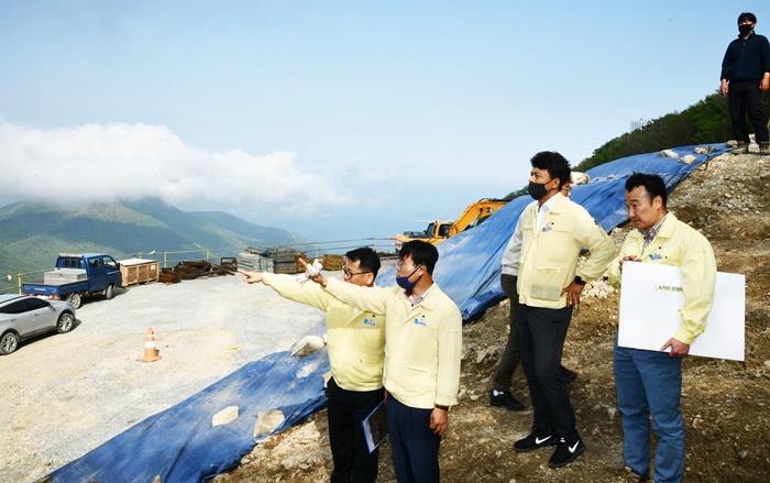 º¯ ½ÃÀåÀº °ø»ç¿¡ Â÷ÁúÀÌ ¾øµµ·Ï ÁøÇàÇöȲÀ» Á¡°ËÇϰí, ÇϺν°Àå°ú ÁÖÂ÷ÀåÀÇ °ñÁ¶ °ø»ç ÇöÀå, ¿Ëº® µî ºÎ´ë Åä¸ñ °ø»ç, ³ëÀÚ»ê Á¤»ó¿¡ À§Ä¡ÇÑ »óºÎ½Â°Àå, öžÁöÁÖ µî ÁÖ¿ä ±¸Á¶¹°°ú ÇöÀå »óȲÀ» ²Ä²ÄÈ÷ üũÇß´Ù.