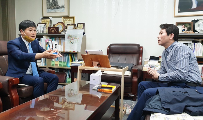 ¸é´ãÀ» ¸¶Ä£ º¯ ½ÃÀåÀº ±¹È¸¿¡¼ ÀÌÀοµ ±¹È¸ÀÇ¿ø(Àü ¹ÎÁÖ´ç ¿ø³»´ëÇ¥)À» ¸¸³ª ±¹¸³ ³´ë¼ö¸ñ¿ø À¯Ä¡¸¦ ºñ·ÔÇØ ³³ºÎ³»·úöµµ Á¶±â Âø°ø, °í¿ëÀ§±âÁö¿ª¿¡ µû¸¥ Èñ¸Á±Ù·Î »ç¾÷ ÃßÁø µî Áö¿ªÀÇ ¿©·¯ Çö¾ÈµéÀ» ¼³¸íÇϰí Áö¿øÀ» °ÇÀÇÇß´Ù.