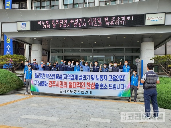 [½Ã»çÄÚ¸®¾ÆÀú³Î=À̵¿¿ì ±âÀÚ] ¿øÀڷ³뵿Á¶ÇÕ¿¬´ë ³ëÈñö ÀÇÀåÀº 19ÀÏ ¿ÀÀü 11½Ã °æÁÖ½Ãû ¾Õ¿¡¼ ¿ù¼º¿øÀü »ç¿ëÈÄ ÇÙ¿¬·á ÀÓ½ÃÀúÀå½Ã¼³ Ãß°¡ °Ç¼³À» À§ÇÑ Áï°¢ÀûÀÎ °ø·ÐÈ Âø¼ö¿Í °æÁֽùÎÀÇ ¾ÐµµÀûÀÎ Âù¼ºÀ» È£¼ÒÇÏ´Â ±âÀÚȸ°ßÀ» °¡Á³´Ù.