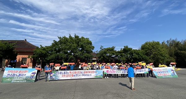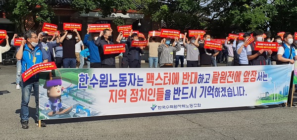 [½Ã»çÄÚ¸®¾ÆÀú³Î=À̵¿¿ì ±âÀÚ] Çѱ¹¼ö·Â¿øÀڷ³뵿Á¶ÇÕ(À§¿øÀå ³ëÈñö)Àº 27ÀÏ ¿ÀÈÄ 4½ÃºÎÅÍ °æÁÖ¿ª ¾Õ ±¤Àå¿¡¼ ¿ù¼º¿øÀÚ·Â ¸Æ½ºÅÍ Ãß°¡ Áõ¼ºÀ» À§ÇÑ °ø·ÐÈ¿¡ °æÁֽùεéÀÇ ¾ÐµµÀûÀÎ ÁöÁö¸¦ È£¼ÒÇÏ´Â Çà»ç¸¦ ÁøÇàÇß´Ù.