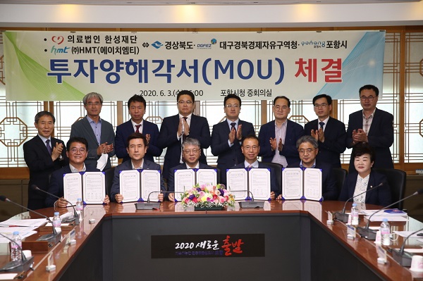 [½Ã»çÄÚ¸®¾ÆÀú³Î=À̵¿¿ì ±âÀÚ] Æ÷Ç׽ô 3ÀÏ Æ÷Ç×½Ãû¿¡¼ °¼ºÁ¶ °æºÏµµ ÇàÁ¤ºÎÁö»ç, ±èÁøÇö ´ë±¸°æºÏ°æÁ¦ÀÚÀ¯±¸¿ªÃ»Àå Á÷¹«´ë¸®, ÀÇ·á¹ýÀÎ ÇѼºÀç´Ü ÀÌ»çÀå, (ÁÖ)HMT ´ëÇ¥ÀÌ»ç µî 15¸íÀÌ Âü¼®ÇÑ °¡¿îµ¥ 2°ÇÀÇ ÅõÀÚ¾çÇØ°¢¼(MOU) ü°á½ÄÀ» °¡Á³´Ù°í ¹àÇû´Ù.