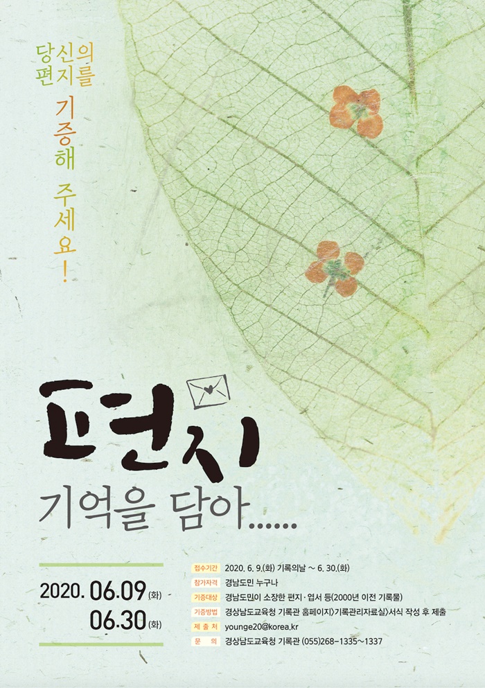 | °æ³²±³À°Ã»Àº 9ÀÏ ±â·ÏÀÇ ³¯À» ¸Â¾Æ 'ÆíÁö, ±â¾ïÀ» ´ã¾Æ'¶ó´Â ÁÖÁ¦·Î ±â·Ï¹°À» ¼öÁýÇÑ´Ù. »çÁøÀº Çà»ç Æ÷½ºÅÍ. |
