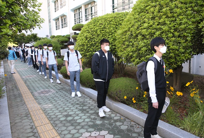 °¢±Þ Çб³¿¡¼´Â ÇлýµéÀÇ Á¢ÃËÀ» ÃÖ¼ÒÈÇϱâ À§ÇØ ½Ç³» ¹Ù´Ú¿¡ ÅëÇà È»ìÇ¥¸¦ ºÎÂøÇϰí, Çгâ(±Þ)º° ½ÃÂ÷¸¦ µÎ¾î ½¬´Â ½Ã°£ ¿î¿µ, ±Þ½Ä½Ç ĸ·ÀÌ ¼³Ä¡ µî Çлý µî±³ ÀüºÎÅÍ ±³Á÷¿øµéÀÌ Ãâ±ÙÇØ Çлý¾ÈÀüÁöµµ¿¡ ÃÖ¼±À» ´ÙÇÏ´Â ¸ð½ÀÀ̾ú´Ù.