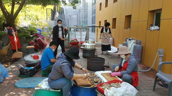 ¹«´õ¿î ³¯¾¾ ¼Ó¿¡¼ ÁøÇàµÈ À̹ø Çà»ç´Â ȸ¿øµéÀÌ Á÷Á¢ ²úÀÎ ¸Å¿îÅÁ°ú Á¤¼º²¯ ÁغñÇÑ ¸ÀÀÖ´Â À½½ÄµéÀ» Á÷¿ø»Ó¸¸ ¾Æ´Ï¶ó ÇàÁ¤º¹Áö¼¾ÅÍ¿¡¼ ÇÔ²² ±Ù¹«ÇÏ´Â ±â°£Á¦±Ù·ÎÀÚ, ȯ°æ¹ÌÈ¿øµé°ú ÇÔ²² ³ª´®À¸·Î½á Äڷγª »çÅ·ΠÈûµç ½Ã±â¸¦ ÇÔ²² °ßµ®³»°í ÀÖ´Â ¸ðµÎ¿¡°Ô °¨µ¿À» ¼±»çÇß´Ù.