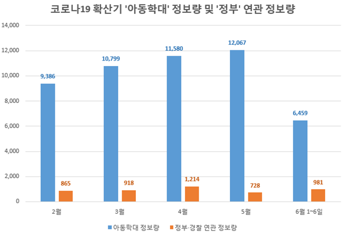 '¾Æµ¿Çдë-Á¤ºÎ±â°ü'À» Ű¿öµå·Î ÇÑ Á¤º¸·®Àº 4¿ù 1,214°ÇÀ» Á¤Á¡À» ±â·ÏÇÑ ÈÄ 5¿ù¿£ 728°ÇÀ¸·Î ¶Ò ¶³¾îÁ³´Ù.