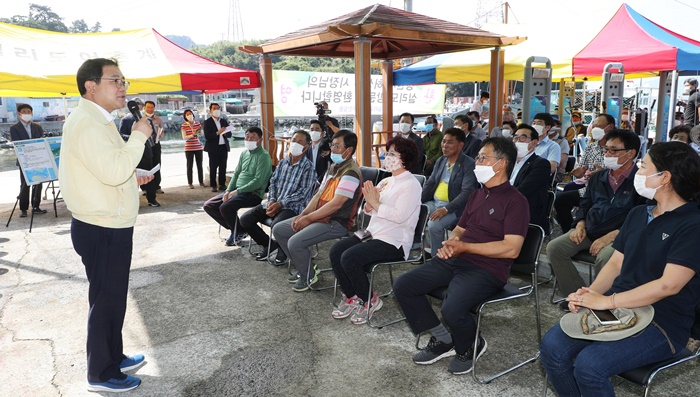 | â¿ø½Ã´Â 11ÀÏ Áö³ 2019³âºÎÅÍ ½Ç½ÃÇÑ ‘½Ç¸®µµ µµ¼Áö¿ª½Ä¼ö¿ø°³¹ß»ç¾÷’ À» ÁذøÇϰí, Ç㼺¹« ½ÃÀåÀÌ Âü¼®ÇÑ °¡¿îµ¥ Åë¼ö½ÄÀ» °¡Á³´Ù. »çÁøÀº Çã ½ÃÀåÀÌ Àλ縻À» Çϰí ÀÖ´Ù. |
