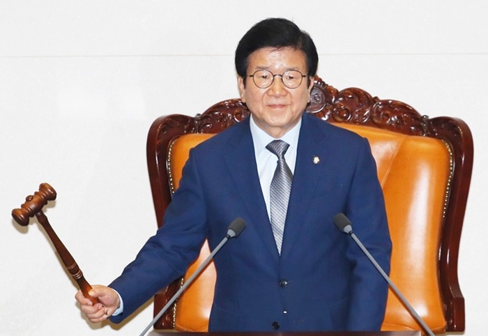 | ¹Úº´¼® ±¹È¸ÀÇÀåÀÌ 12ÀÏ ¿ÀÈÄ ±¹È¸ º»È¸ÀÇÀå¿¡¼ º»È¸ÀǸ¦ °³ÀÇÇϰí ÀÖ´Ù. ÇÏÁö¸¸, »óÀÓÀ§¿øÀå ¼±ÃâÀº ¾ß´ç ºÒÂü¿¡ µû¶ó 3ÀÏ ¿¬±âÇÑ 15ÀÏ¿¡ ó¸®ÇÏ°Ú´Ù°í ¹àÇû´Ù. |