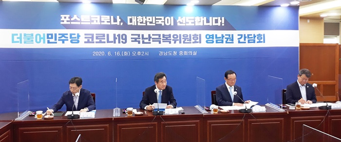 | '´õºÒ¾î¹ÎÁÖ´ç Äڷγª19 ±¹³±Øº¹À§¿øÈ¸ ¿µ³²±Ç °£´ãȸ'°¡ 16ÀÏ ¿ÀÈÄ °æ³²µµÃ» ÁßȸÀǽǿ¡¼ ¿·È´Ù. |