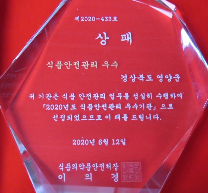 [½Ã»çÄÚ¸®¾ÆÀú³Î=±è¿¬ÇÐ ±âÀÚ] ¿µ¾ç±º(±º¼ö ¿ÀµµÃ¢)Àº Áö³ 12ÀÏ 2020³â ½ÄǰÀǾàǰ¾ÈÀüó ÁÖ°ü Áö¹æÀÚÄ¡´Üü ‘½Äǰ¾ÈÀü°ü¸® Æò°¡’¿¡¼ ¿ì¼ö±â°üÀ¸·Î ¼±Á¤µÆ´Ù°í ¹àÇû´Ù.