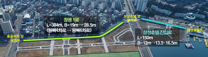 °³ÅëµÇ´Â ÀåÆò1·Î´Â ȨÇ÷¯½º ±³Â÷·Î¿¡¼ ÇØ¾çÆÄÃâ¼Ò±îÁö 534m·Î¼, °íÇöÇ× Ç׸¸Àç°³¹ß»ç¾÷ 2´Ü°è »ç¾÷ÀÌ´Ù.