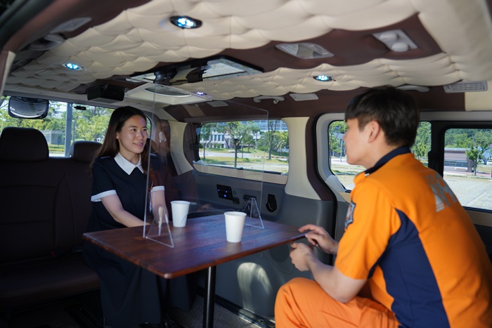 Ã⵿´ë±â¸¦ À§ÇØ Ç×»ó ±äÀåÇϰí ÀÖ´Â ¼Ò¹æ°ø¹«¿øÀÌ Æí¾ÈÇÏ°Ô Â÷ ÇÑÀܰú ´ã¼Ò¸¦ ³ª´ ¼ö ÀÖµµ·Ï Â÷·®À» °³Á¶ÇØ 5ÀÎ¿ë »ó´ã°ø°£À» ¸¶·ÃÇßÀ¸¸ç, Äڷγª19 ¿¹¹æÀ» À§ÇØ ¾ß¿Ü¿ë ¾È¶ôÀÇÀÚ¿Í Æ¼ Å×À̺íÀ» ºñÄ¡Çß´Ù.
