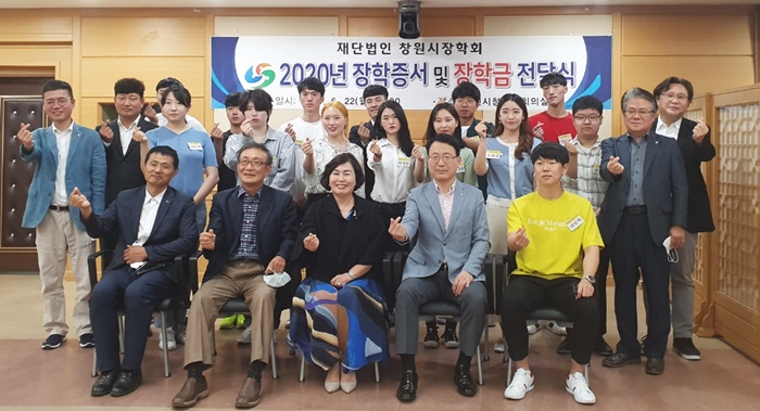 [½Ã»çÄÚ¸®¾ÆÀú³Î=Á¤Á¾¹Î ¼±ÀÓ±âÀÚ] Àç´Ü¹ýÀΠâ¿ø½ÃÀåÇÐȸ(ÀÌ»çÀå ±èÀ»¼ø)´Â 22ÀÏ ½Ãû Á¦3ȸÀǽǿ¡¼ Á¶¿µÁø â¿ø½Ã Á¦1ºÎ½ÃÀå°ú ÀåÇлý ´ëÇ¥ 14¸í, ÀåÇÐȸ ÀÓ¿øÁø µî 25¸íÀÌ Âü¼®ÇÑ °¡¿îµ¥ ‘2020³â ÀåÇÐÁõ¼ ¹× ÀåÇÐ±Ý ¼ö¿©½Ä’À» °¡Á³´Ù.