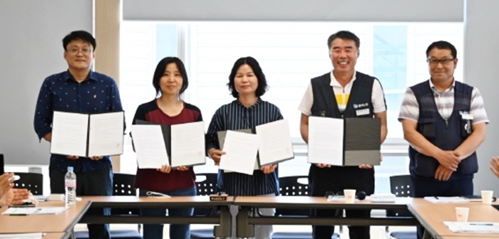| ±Ý¼Ó³ëÁ¶ °æ³²ÁöºÎ(ÁöºÎÀå È«Áö¿í)ÀÇ 2020³â »çȸ¿¬´ë»ç¾÷ÀÌ 22ÀÏ 3°÷ÀÇ ½Ã¹Î»çȸ´Üü¿Í Çù¾à½ÄÀ» ¸ÎÀ¸¸ç ù ¹ß°ÉÀ½À» ³»µó¾ú´Ù. »çÁøÀº Çù¾à¼ ¼¸í ¸ð½À. |