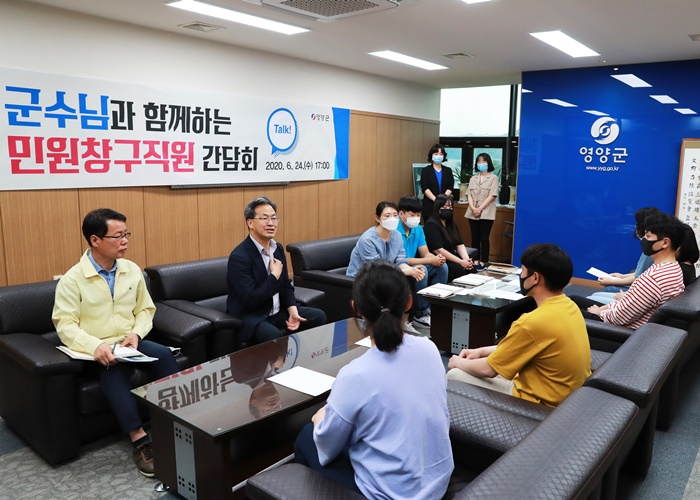 [½Ã»çÄÚ¸®¾ÆÀú³Î=±è¿¬ÇÐ ±âÀÚ] ¿µ¾ç±º(±º¼ö ¿ÀµµÃ¢)Àº 24ÀÏ ±º¹Î »ç¶û¹æ¿¡¼ ¹Î¿ø ¹× ¼¼¹«, ÅäÁö µî ÃÖÀϼ± ´ë¹Î¾÷¹«¸¦ ´ã´çÇÏ´Â ¹Î¿ø½Ç ⱸÁ÷¿øµéÀ» ´ë»óÀ¸·Î °£´ãȸ¸¦ °¡Á³´Ù.