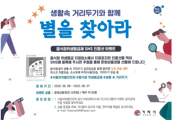 [½Ã»çÄÚ¸®¾ÆÀú³Î=Á¤Á¾¹Î ¼±ÀÓ±âÀÚ] °ÅÁ¦½Ã´Â À½½ÄÁ¡À§»ýµî±ÞÁ¦ ÀÎÁöµµ¸¦ ³ôÀ̱â À§ÇØ ½ÄǰÀǾàǰ¾ÈÀüó¿¡¼ ÁøÇàÇÏ´Â À§»ýµî±Þ À½½ÄÁ¡¿¡¼ »ýȰ¹æ¿ª °ü·Ã ÀÎÁõ¼¦À» ³²±â´Â ‘º°À» ã¾Æ¶ó’ SNS À̺¥Æ®¸¦ ¿À´Â 8¿ù 7ÀϱîÁö ÁøÇàÇÑ´Ù°í ¹àÇû´Ù.