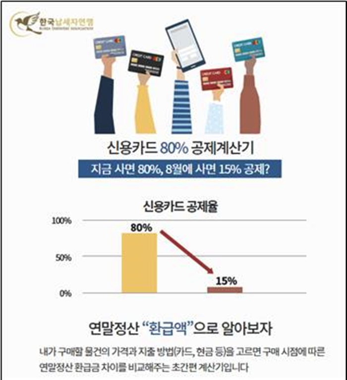 Çѱ¹³³¼¼ÀÚ¿¬¸Í(ȸÀå ±è¼±ÅÃ)Àº 25ÀÏ “¼Òµæ°øÁ¦À² ÇýÅÃÀÌ Àû¿ëµÇ´Â 7¿ùÀ» ±âÁØÀ¸·Î ±× ÀÌÀü°ú ÀÌÈÄ Á¦Ç°À» ±¸¸ÅÇßÀ»¶§ÀÇ È¯±Þ¾× Â÷ÀÌ¿Í Á¦Ç°ÇÒÀÎÀ²À» ¾Ë·ÁÁÖ´Â ‘½Å¿ëÄ«µå 80% °øÁ¦°è»ê±â’¸¦ °ø°³ÇÑ´Ù”°í ¹àÇû´Ù.