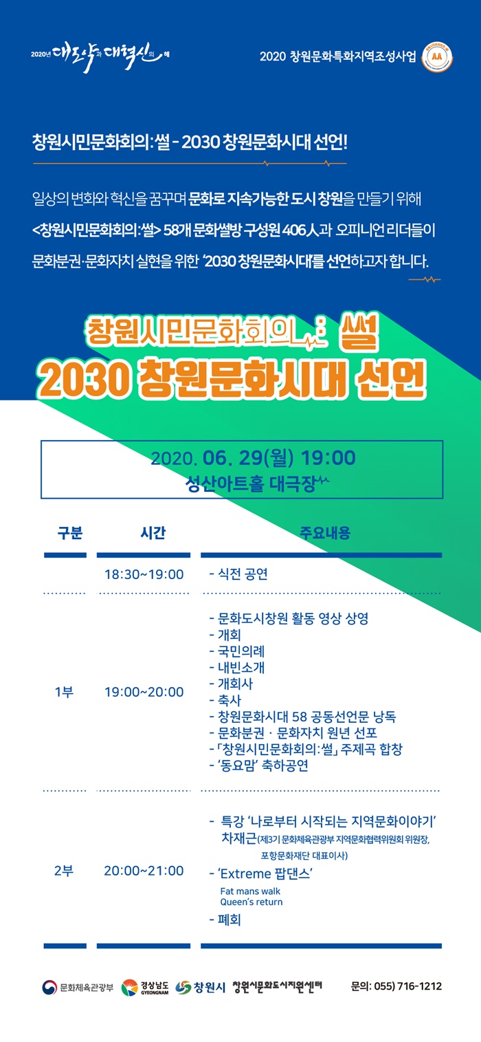 À̹ø ¼±Æ÷½Ä¿¡¼´Â 2018³âºÎÅÍ ÃßÁøÇؿ ‘¹®Èµµ½Ã Á¶¼ºÀ» À§ÇÑ Áغñ’ Ȱµ¿À» ÅëÇØ ÃàÀûµÈ ¿ª·®À» ¹ÙÅÁÀ¸·Î 2020³âÀ» Áö¿ª¹®ÈÁøÈï¹ýÀÇ Çٽɰ¡Ä¡ÀÎ ‘¹®ÈºÐ±Ç·¹®ÈÀÚÄ¡’ ½ÇÇöÀ» À§ÇÑ ¿ø³âÀ¸·Î ¼±Æ÷Çϸç Áö¿ªºÐ±Ç½Ã´ë¸¦ ¿¾î°¡´Â »õ·Î¿î ¹®ÈºñÀüÀ» Á¦½ÃÇÒ ¿¹Á¤ÀÌ´Ù.