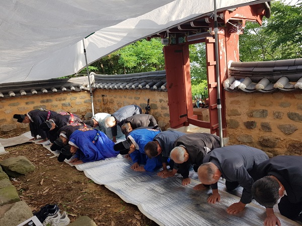 [½Ã»çÄÚ¸®¾ÆÀú³Î=À̵¿¿ì ±âÀÚ] °æ»ê½Ã Áø·®À¾Çѹ¦º¸Á¸È¸(Á¦Àå ±è¿ë´Þ)´Â 25ÀÏ Áø·®À¾ Çö³»¸®¿¡ ¼ÒÀçÇÑ Çѹ¦¿¡¼ Áø·®À¾Àå ±èµ¿¿ø, ½ÃÀÇ¿ø À⵿̱ ¹× ¸¶À»´ëÇ¥¸¦ Çå°üÀ¸·Î ¸ð½Ã°í 30¿©¸íÀÇ ¸¶À» À¯»çµéÀÌ Âü¼®ÇÑ °¡¿îµ¥ ÇÑÀ屺 ´©ÀÌÀÇ ³ÌÀ» ±â¸®´Â Ã߸ðÁ¦¸¦ Áö³Â´Ù.