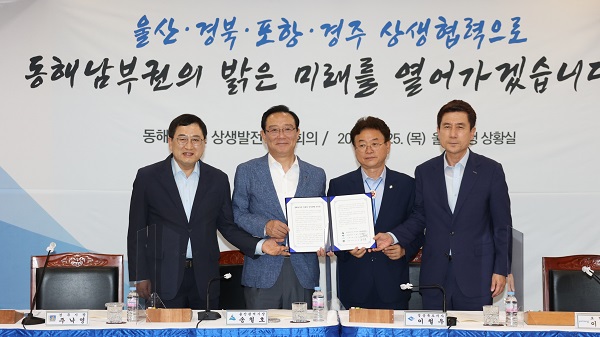 [½Ã»çÄÚ¸®¾ÆÀú³Î=À̵¿¿ì ±âÀÚ] ¼Ûöȣ ¿ï»ê½ÃÀå°ú ÁÖ³«¿µ °æÁÖ½ÃÀå, À̰´ö Æ÷Ç×½ÃÀåÀÌ 25ÀÏ ¿ï»ê½Ãû¿¡¼ 3°³ µµ½Ã ÇàÁ¤ÇùÀÇüÀÎ ‘µ¿Çس²ºÎ±Ç ÇØ¿À¸§µ¿¸Í »ó»ýÇùÀÇȸ’ Á¤±âȸ¸¦ °³ÃÖÇÏ°í ‘µ¿Çس²ºÎ¼± Àüµ¿Â÷ ¿¬Àå¿îÇà °øµ¿°ÇÀǹ®’À» äÅÃÇß´Ù.