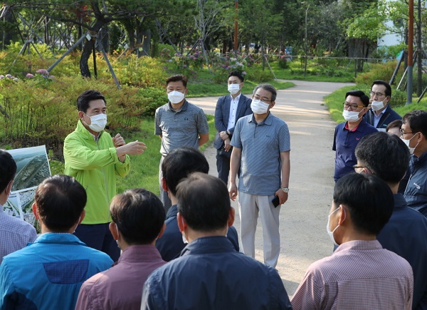 [½Ã»çÄÚ¸®¾ÆÀú³Î=±èÈñ¿µ ±âÀÚ] À̰´ö Æ÷Ç×½ÃÀåÀº 7ÀÏ ÇØµµ°ø¿ø µµ½Ã½£¿¡¼ ³²±¸Ã»ÀåÀ» ºñ·ÔÇÑ ±¸Ã» °£ºÎµé°ú ÇØ´ç Áö¿ª À¾·¸é·µ¿Àå µî 20¿© ¸í°ú ÇÔ²² ¹Î¼±7±â ÈĹݱâÀÇ ÈûÂù Ãâ¹ß°ú ½ÃÁ¤¿î¿µ¹æÇâÀ» °øÀ¯Çϱâ À§ÇÑ ¼ÒÅë Æ®·¹Å· ½Ã°£À» °¡Á³´Ù.