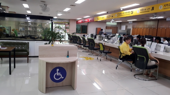 ¶ÇÇÑ ¹Î¿øÃ¢±¸ »óºÎ ¾È³»ÆÇÀ» ±âÁ¸ ´ÜÀÏ »ö»ó¿¡¼ ÅäÁöÀ̵¿ ºÓÀº»ö, Á¾Çչοø ³ë¶õ»ö, ½Ç°Å·¡½Å°í·Áö¹æ¼¼ ÃÊ·Ï»ö, ÀÚµ¿Â÷·°ÇÃà ³²»ö µî ¾÷¹«¿µ¿ªº°·Î »ö»óÀ» ±¸ºÐÇÏ°í ±×¸²¹®ÀÚÀÎ ÇÈÅä±×·¥°ú ¿µ¹®À» º´±âÇØ ¹æ¹®°´ÀÌ ¾÷¹« ´ã´çÀÚ¸¦ ¹Ù·Î ãÀ» ¼ö ÀÖµµ·Ï Çß´Ù.