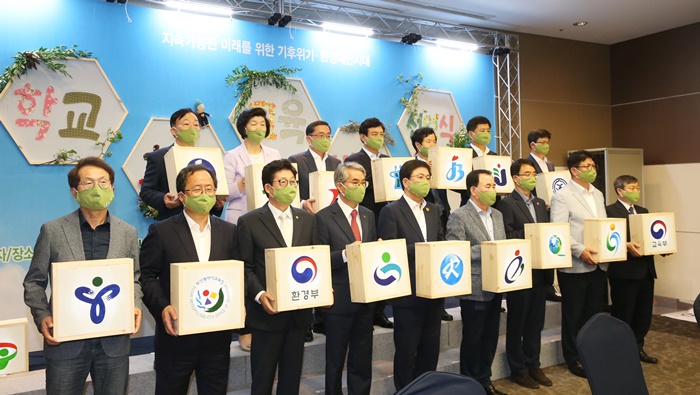 [½Ã»çÄÚ¸®¾ÆÀú³Î=Á¤Á¾¹Î ¼±ÀÓ±âÀÚ] °æ³²µµ±³À°Ã»Àº 9ÀÏ ¿ÀÈÄ Ãæ³² ·Ôµ¥¸®Á¶Æ®ºÎ¿©¿¡¼ Àü±¹ 17°³ ½Ãµµ±³À°°¨°ú ÇÔ²² Áö¼Ó°¡´ÉÇÑ ¹Ì·¡¸¦ À§ÇÑ '±âÈÄÀ§±â・ȯ°æÀ糽ôë Çб³È¯°æ±³À° ºñ»ó¼±¾ð½Ä'À» ¿¾ú´Ù.